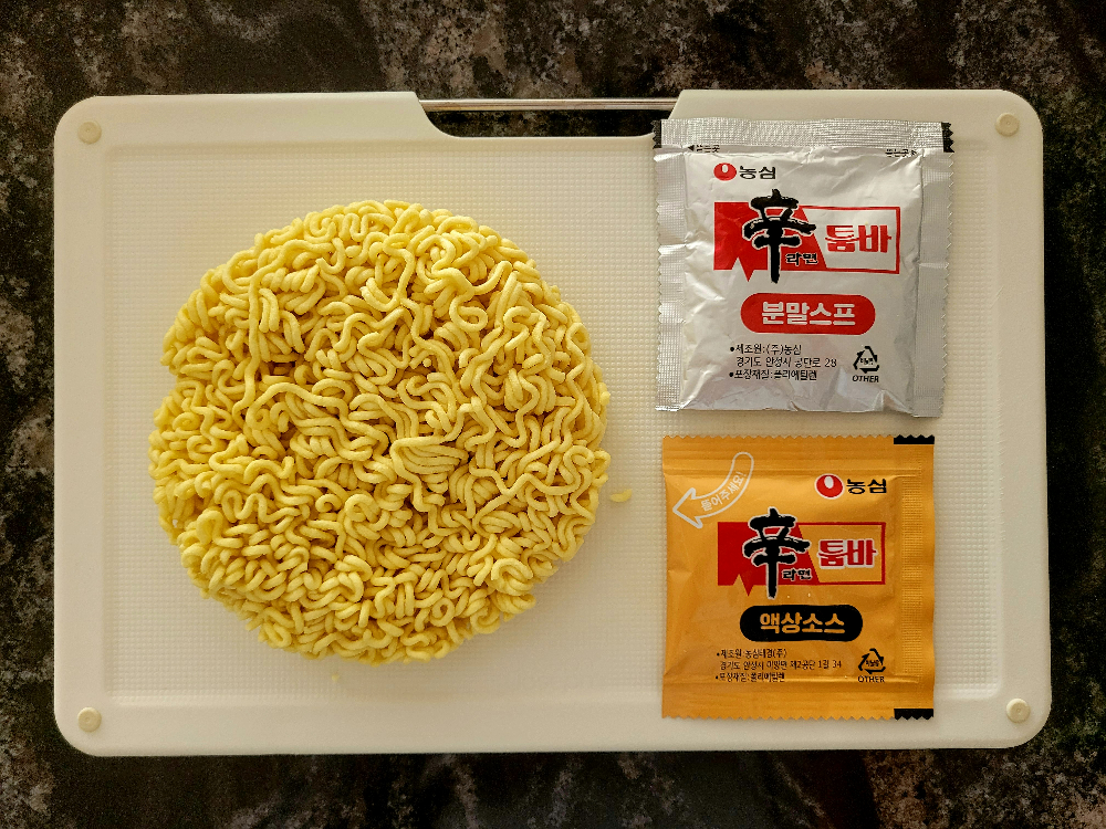 생각보다 꽤 매콤하더라고요. 신라면을 원래 안 먹어서 신라면과는 비교가 안되나... 양파나 쪽파를 추가해서 볶음라면으로 먹어도 맛있겠어요.