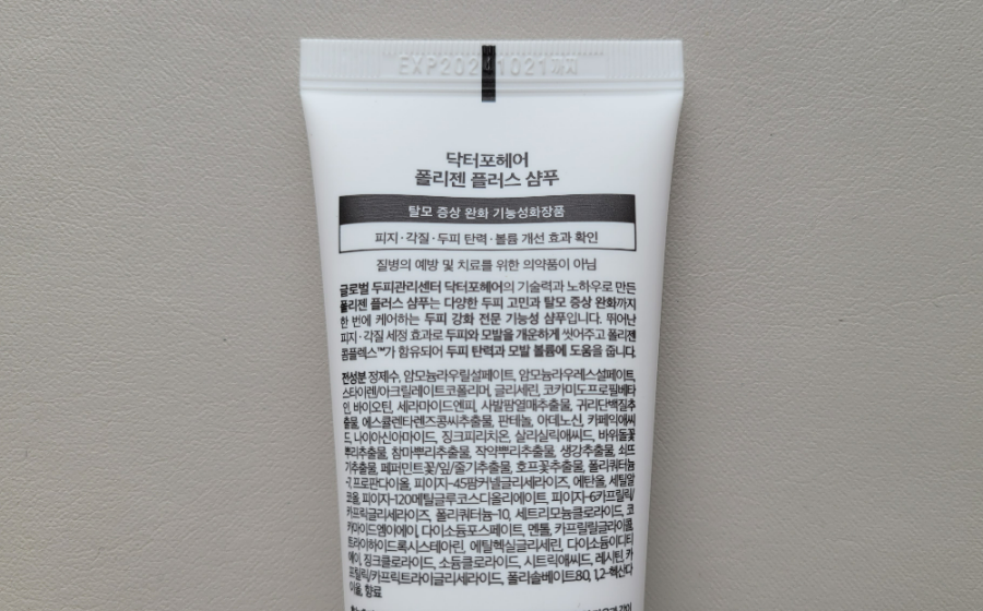 얼마전에 닥터 포헤어 폴리젠 플러스 샴푸를 구입했어요. 이 제품을 산 이유는 딱 세 가지에요.