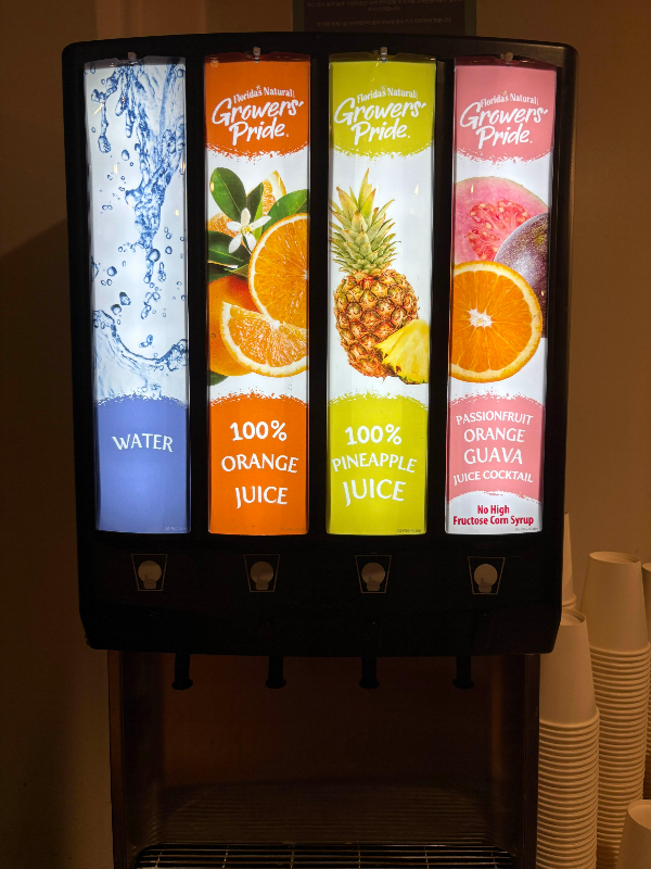 간단하지만 이렇게라도 아침을 먹고 하루를 시작하면 도움이 되더라고요. 빈그릇을 치워주는 직원들이 계셔서, 식사 후 나오는 길에 팁을 1불 정도 두고 나와도 괜찮습니다.