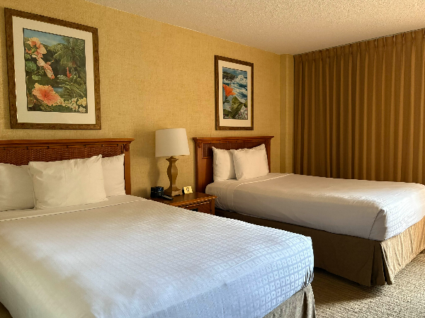 이번 여행에서는 오하우섬 와이키키 리조트 호텔에서 머물렀어요. 하와이는 숙소 가격이 비싼 편인데, 비교적 가격에 합리적인 가격대에, 간단한 조식이 제공되는 점이 마음에 들어 선택했습니다. 와이키키 비치도 매우 가까워요!