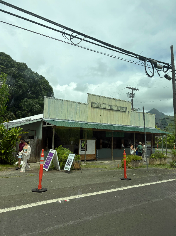 이동 중에는 스트리트 푸드 파이터에 나왔던 식당인, ‘와이아올레 포이 팩토리’도 지나쳤어요. 방송에서 백종원님이 하와이 전통 음식인 포이(Poi)를 맛본 곳이었는데, 실제로 보니 괜히 반갑더라고요.