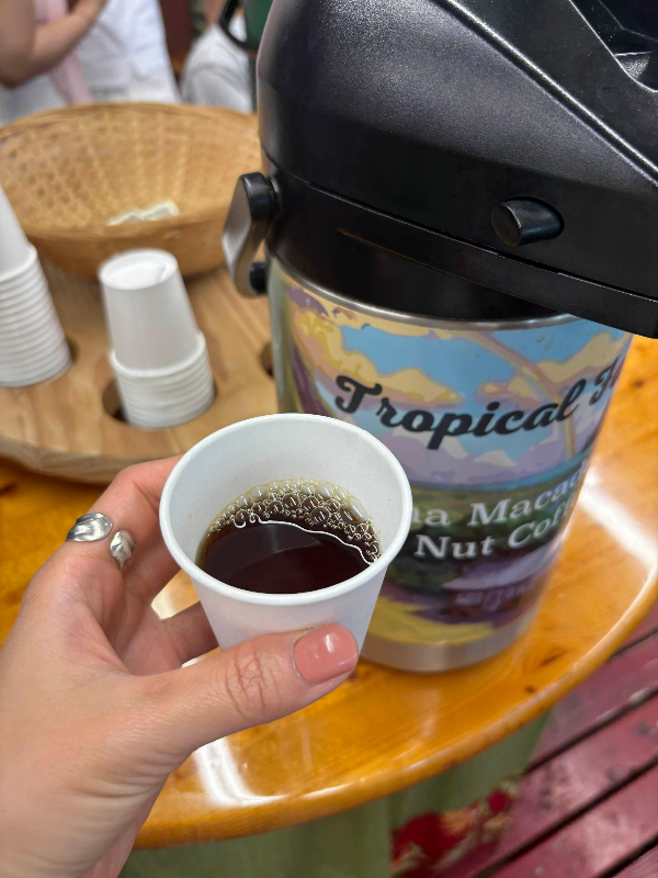 중간에는 마카다미아 넛 농장에 잠시 들러 쇼핑할 시간이 있었어요. 코나 커피를 시음해보고, 꿀이나 차, 로션 등 다양한 기념품도 판매하고 있어서 구경하는 재미가 있었답니다. (여기서 판매중인 기념품은 와이키키 시내에서도 보여서, 투어 중에 꼭 구입할 필요는 없더라고요.)
