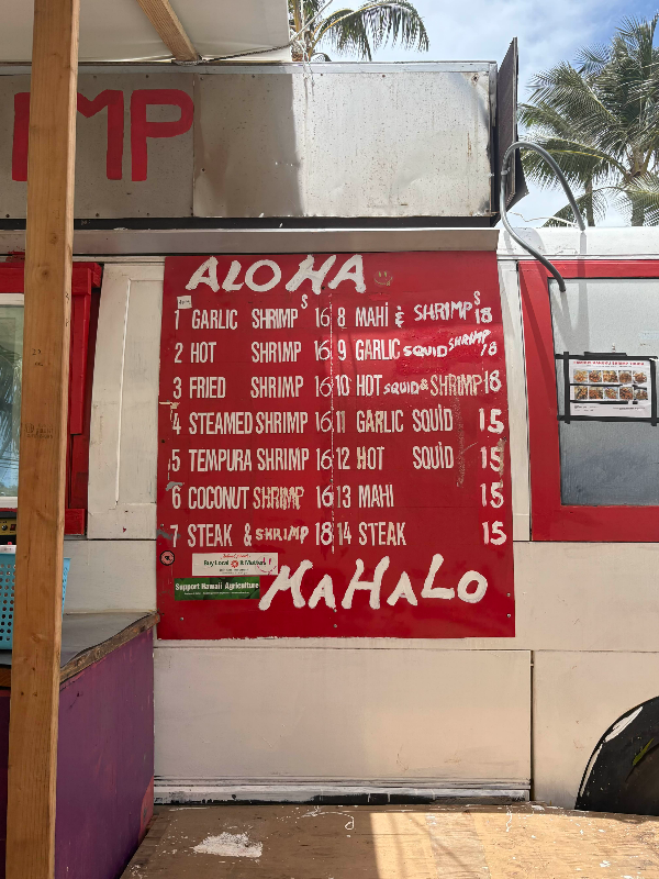 점심은 새우 트럭에서 간단히 해결했어요. 제일 유명하다는 지오반니 트럭은 아니었지만, 하와이 로컬 푸드답게 풍미가 꽤 좋았어요.