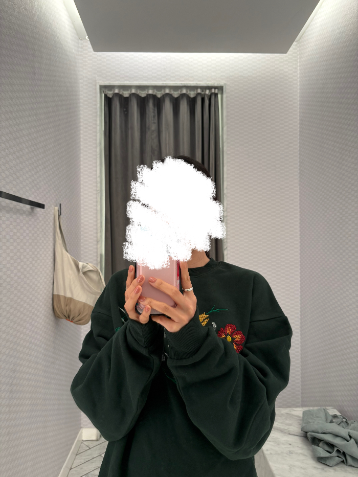 XS 사이즈로 입어보니 넉넉한 핏이 정말 편안했어요. 안쪽에 기모가 있는 도톰한 재질이라 늦가을쯤부터 입기에 딱 좋겠더라고요 :)