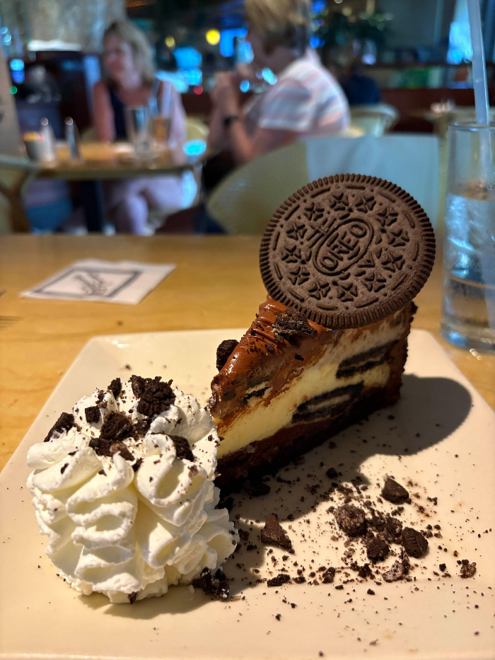 식사 후에는 제가 가장 좋아하는 오레오 드림 익스트림 치즈케이크 한 조각도 주문했어요. 대왕 크기의 오레오가 올려져 있고, 생크림 한 스쿱과 함께 서빙되었으며, 양도 꽤 넉넉해서 식사 후 가족들이 입가심으로 나눠 먹기에 충분했어요.