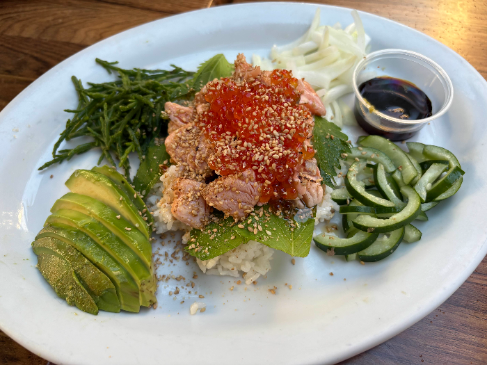 연어알 포케는 연어와 연어알이 듬뿍 올라가 있고, 간장 베이스의 양념이 잘 배어 있었어요. 밥 위에 아보카도와 해초, 오이 등이 함께 어우러져 깔끔하면서도 감칠맛 나는 조합이었어요. 신선한 재료 덕분에 비리지 않고, 한 그릇 가득 담긴 하와이의 맛을 제대로 느낄 수 있었답니다.