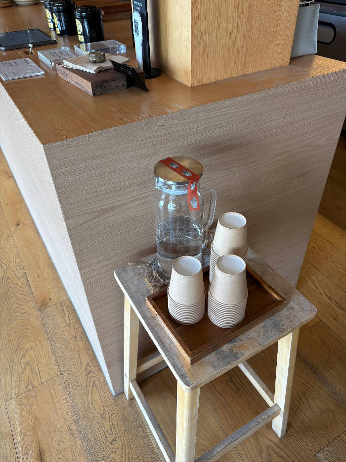 물은 셀프 코너에서 자유롭게 가져다 마실 수 있어요.