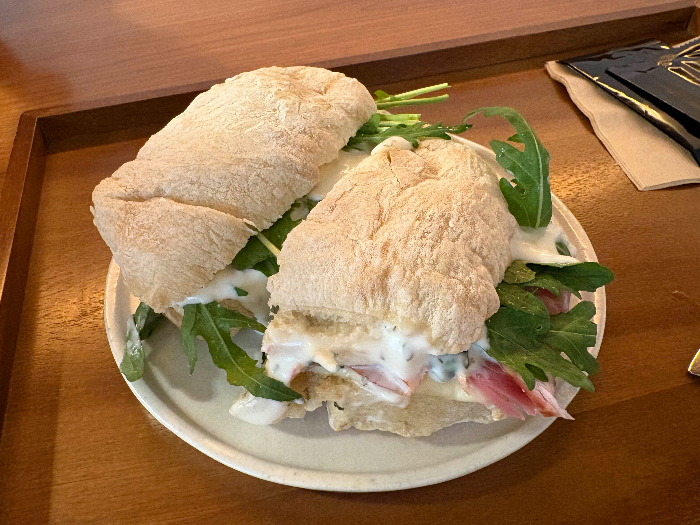 치아바타 샌드위치는 든든하게 즐길 수 있는 브런치 메뉴로 딱이었어요. 담백한 치아바타 빵과 신선한 재료가 잘 어우러져 식사 대용으로도 충분히 만족스러웠습니다. 특히 샌드위치 속에 소스가 듬뿍 들어가 있어서 더 풍미 있게 즐길 수 있었어요.