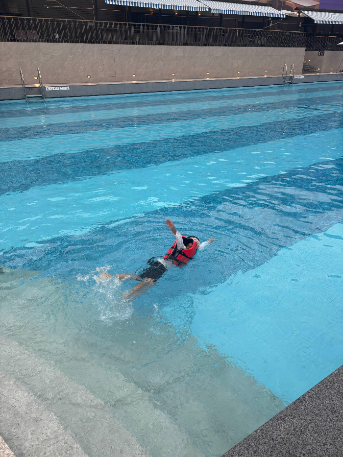 Children under 130cm were required to wear life jackets, which were available for free on-site, so there was no extra burden. Tubes were allowed, but snorkeling gear was not permitted. (Honestly, I wasn’t sure why anyone would use snorkeling gear in a swimming pool 😅, and I actually saw a family getting stopped by staff for trying to use it.)