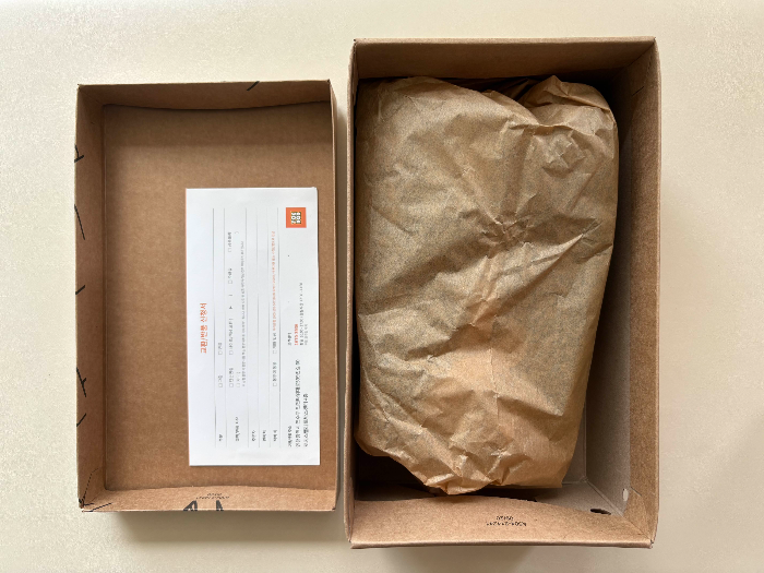 슬리퍼는 깔끔한 갈색 멜리사 전용 박스에 담겨 왔고, 저는 멜리사 공식 사이트에서 구입했어요. 마침 10% 할인 중이라 조금 더 합리적인 가격에 데려올 수 있었습니다.