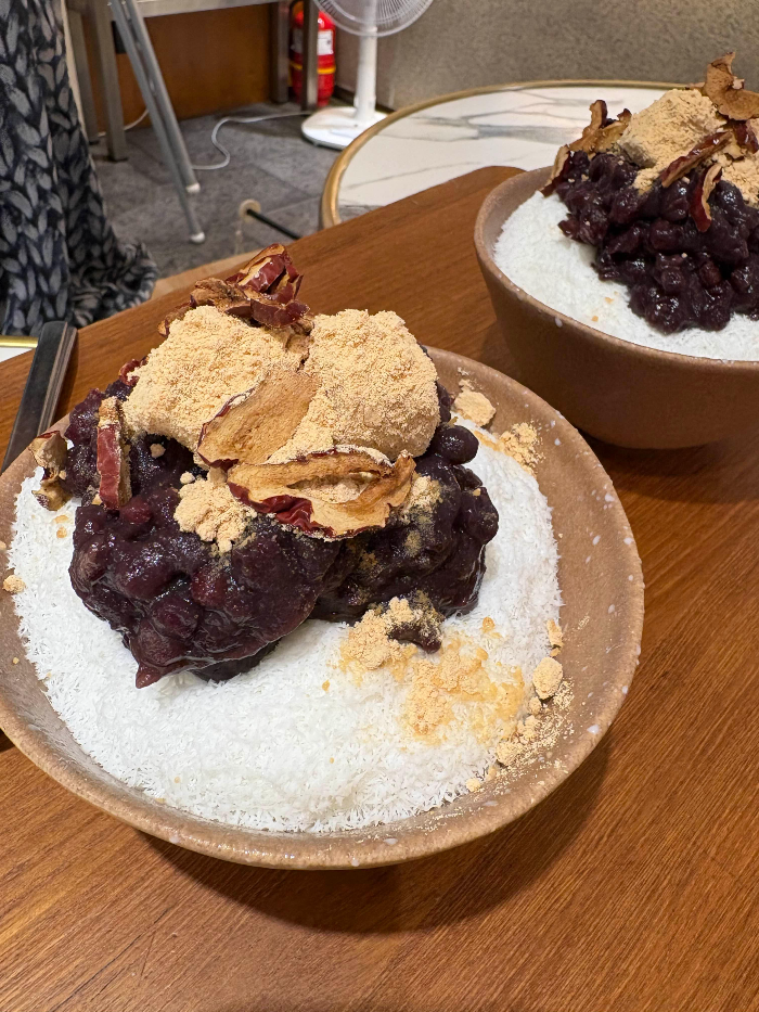 After a satisfying lunch, we finished off with red bean bingsu at the nearby cafe 'Panet'. The bingsu, topped with mochi and jujube, had a delightful chewy texture and nutty flavor, allowing us to savor the lingering taste of lunch while relaxing with my friend.