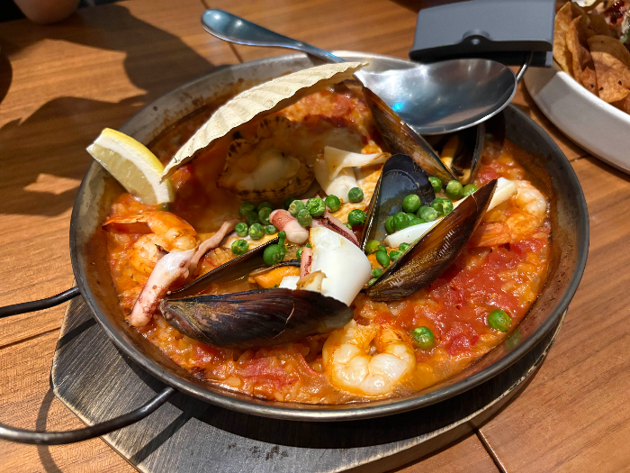 The Seafood Paella came generously topped with mussels, squid, and shrimp, offering both a rich visual appeal and flavor. However, the seasoning was a bit on the mild side, which left us wishing for a stronger taste.