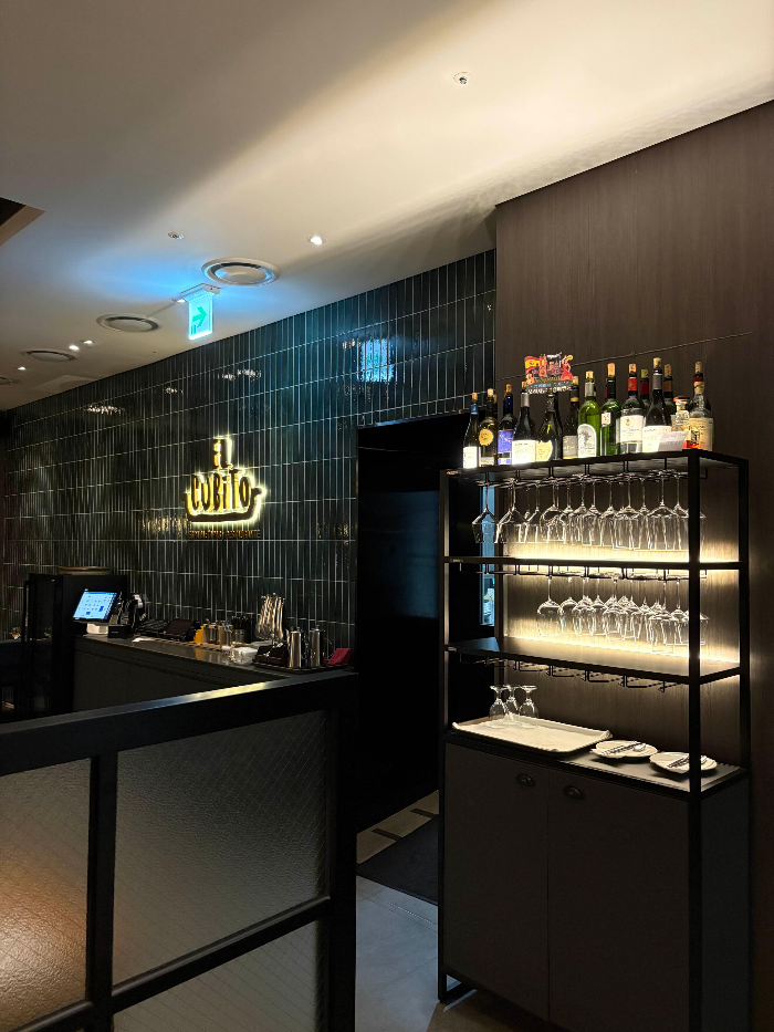 Inside, the elegant wine racks and warm lighting create a cozy yet sophisticated atmosphere. Since we made a reservation in advance, we were guided to a table with partitions, which allowed us to enjoy a quieter and more private dining experience.