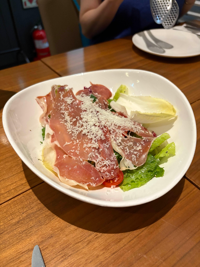 The Jamón salad was served with fresh greens topped with thinly sliced jamón, offering a savory and flavorful bite. Light and refreshing, it was a perfect starter to whet the appetite before the main dishes.