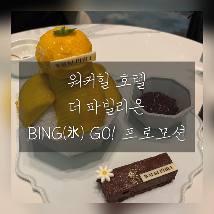 지난번 워커힐 호텔 호캉스 포스팅에서 소개하지 못했던 망고 빙수! 호텔 도착 후, 체크인 시간까지 여유가 있어서 본관 1층에 위치한 '더 파빌리온(The Pavilion)'에 들렀어요. 기다리며 이번 시즌 한정 메뉴로 나온 망고 빙수를 맛보기로 했습니다.