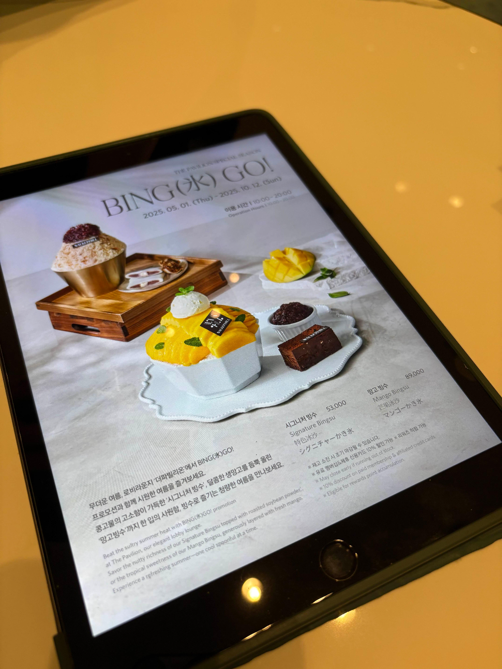 Before check-in, we stopped by The Pavilion on the first floor of Walkerhill Hotel to try the season’s limited Mango Bingsu.