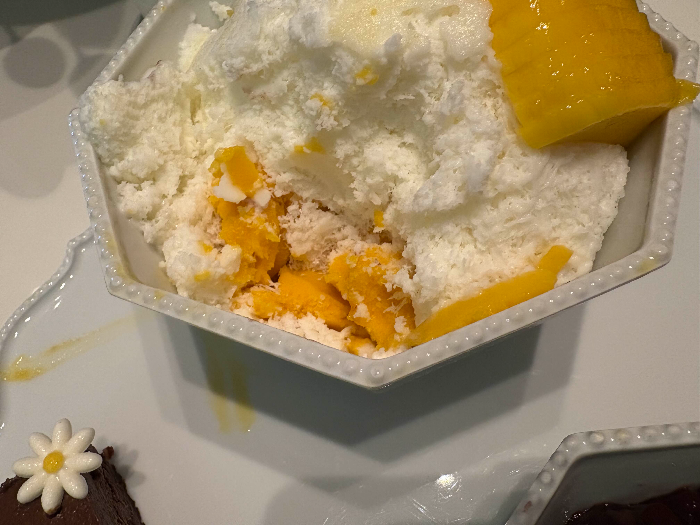 It came in a large bowl of finely shaved milk ice, topped with ripe mango chunks and refreshing mango sherbet.