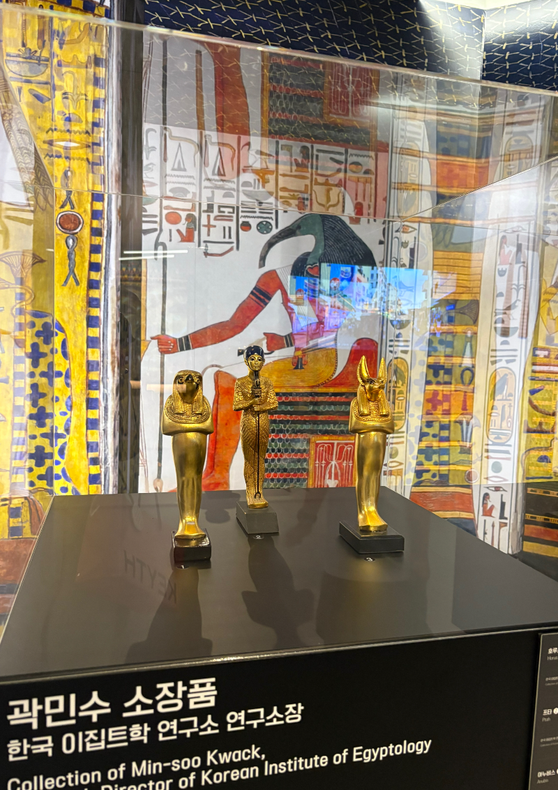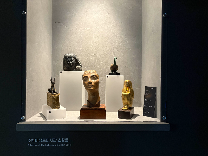 전시 곳곳에는 포토존이 있어 기념 사진을 찍기 좋았고, 주한 이집트 대사관 소장 유물들도 함께 전시되어 있어 실제 고대 이집트를 가까이서 체험할 수 있었답니다. 한 가지 팁을 드리자면, 전시 공간 내 에어컨이 매우 세게 켜져 있어 겉옷을 챙겨 가시는 것이 좋아요.
