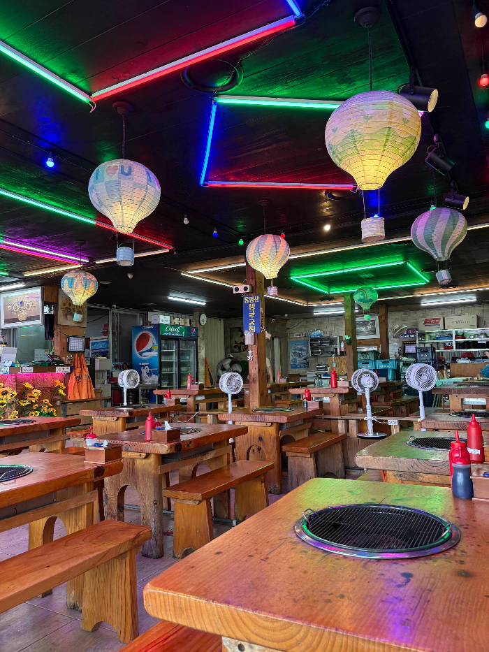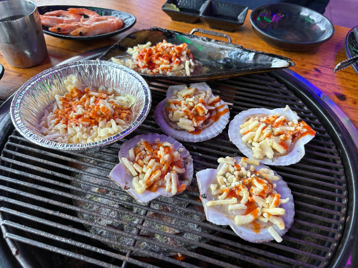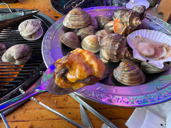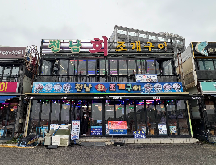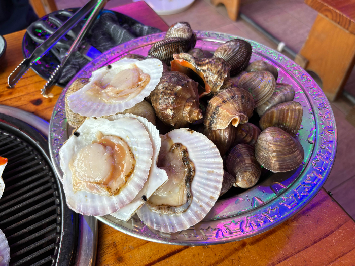 Eulwangri Beach is full of clam BBQ restaurants, and for lunch, we chose Jeonnam Hoe & Clam Grill.