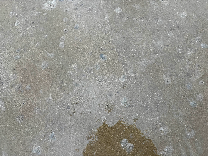 모래는 갯벌처럼 곱고, 조개 때문인지 곳곳에 몽글몽글한 구멍이 있어 보는 재미도 있었어요.