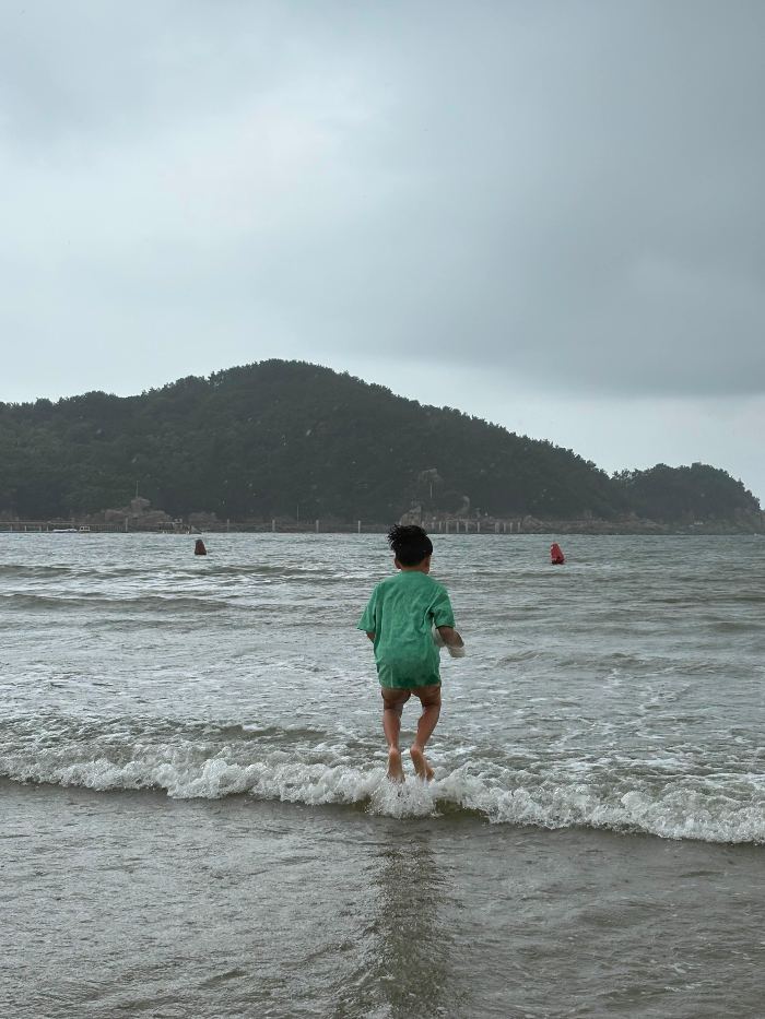 식사를 마친 후에는 바다에 잠시 나가보았어요. 비가 오고 날씨가 영 좋진 않았지만, 발이라도 담그지 않으면 아쉬울 것 같더라고요.