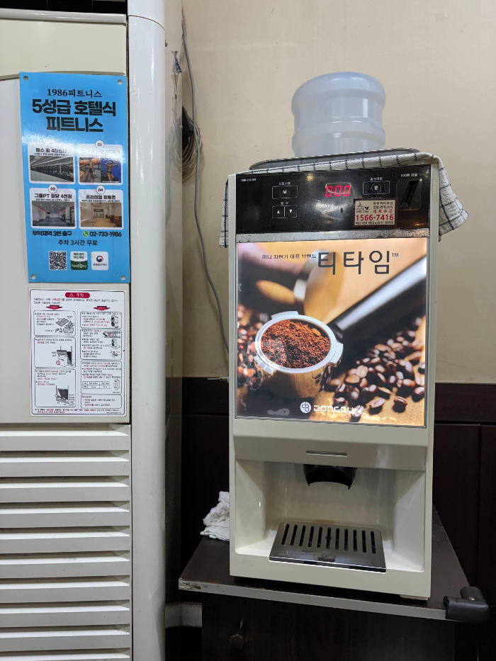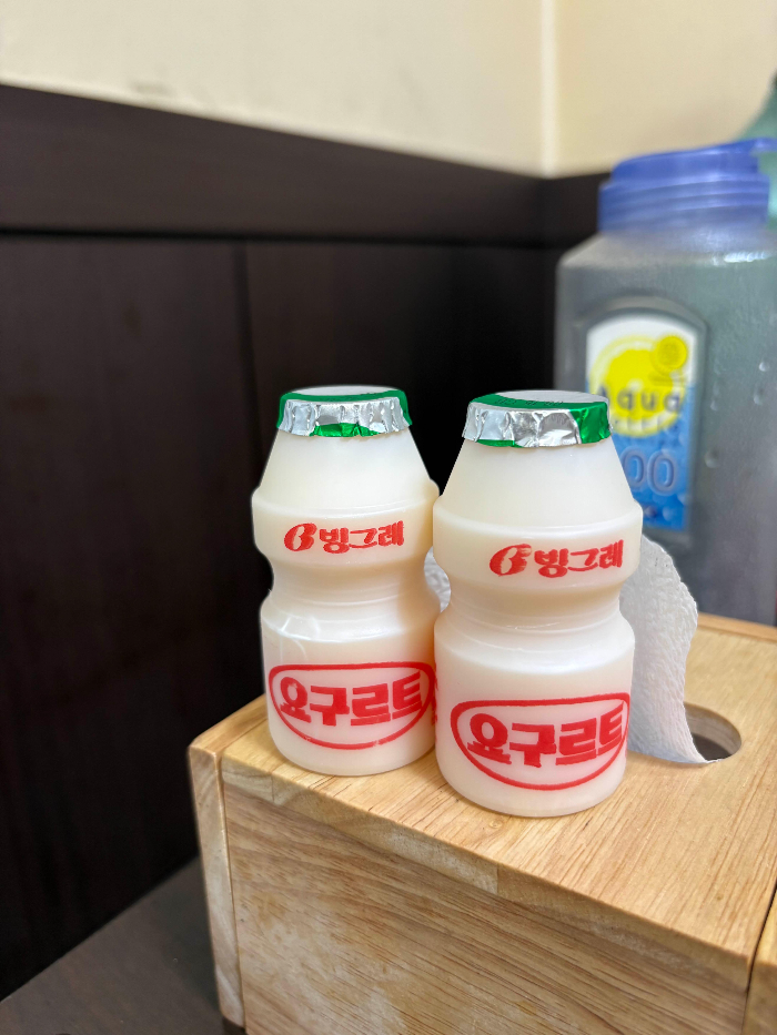 후식으로는 늘 요구르트를 한 개씩 제공해 주셔서 입가심하기 좋고, 원하면 커피머신에서 믹스커피를 뽑아 마실 수도 있어요. 사탕도 준비되어 있어 식사 후 달콤하게 마무리할 수 있습니다.