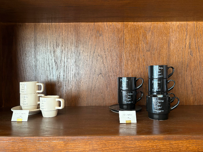 There’s a small MD corner with mugs, tumblers, and packaged coffee beans featuring the TOC logo — perfect as gifts or souvenirs.
