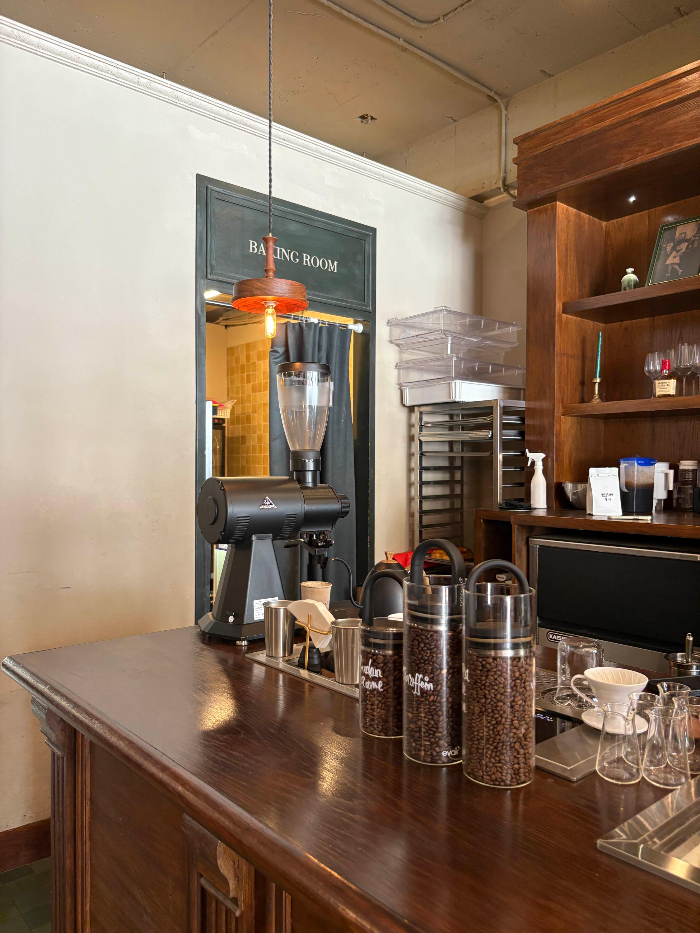 디저트 메뉴도 함께 판매 중이었는데, 카운터 뒤편으로는 베이킹룸이 보여서 흥미로웠어요.