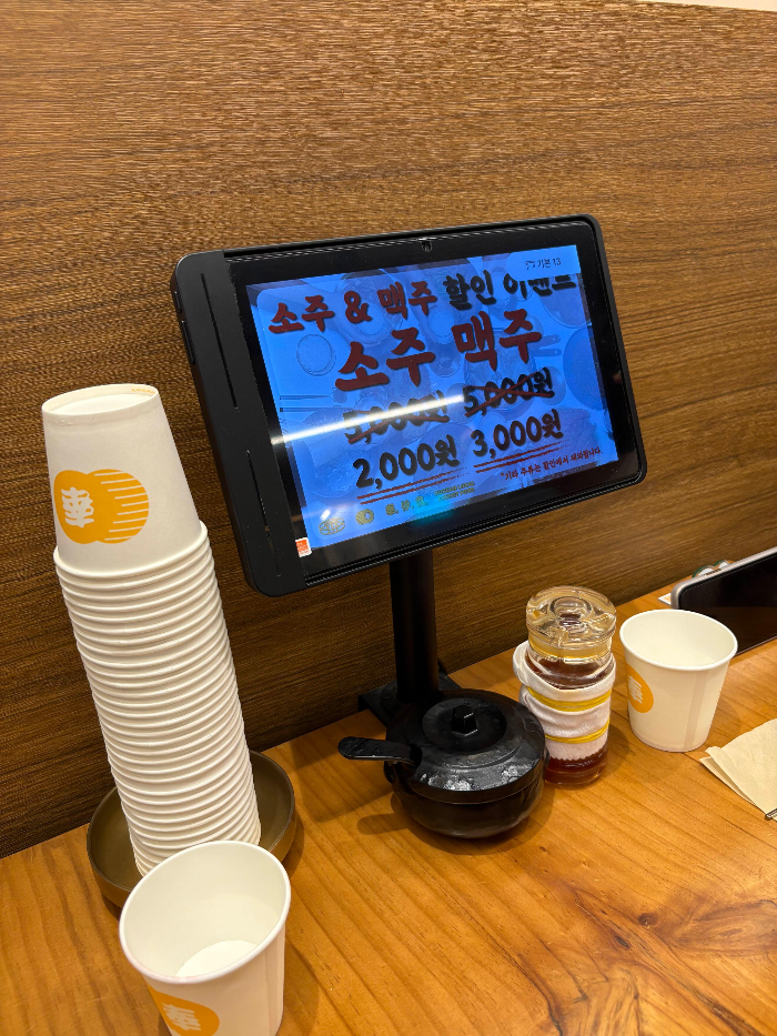 주문은 테이블 위의 태블릿을 이용해서 간편하게 할 수 있었어요.