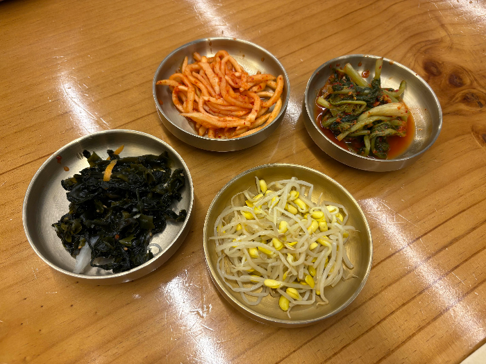 보리밥 세트에는 4가지 종류의 밑반찬이 함께 나왔어요. 그냥 하나씩 맛보기도 좋고, 보리밥에 넣어 비벼 먹으면 맛과 식감이 한층 풍부해져요.