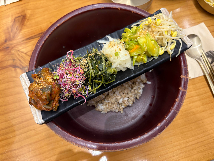 The barley rice set came with four different side dishes. You can enjoy them individually, or mix them into the barley rice for a richer flavor and texture.