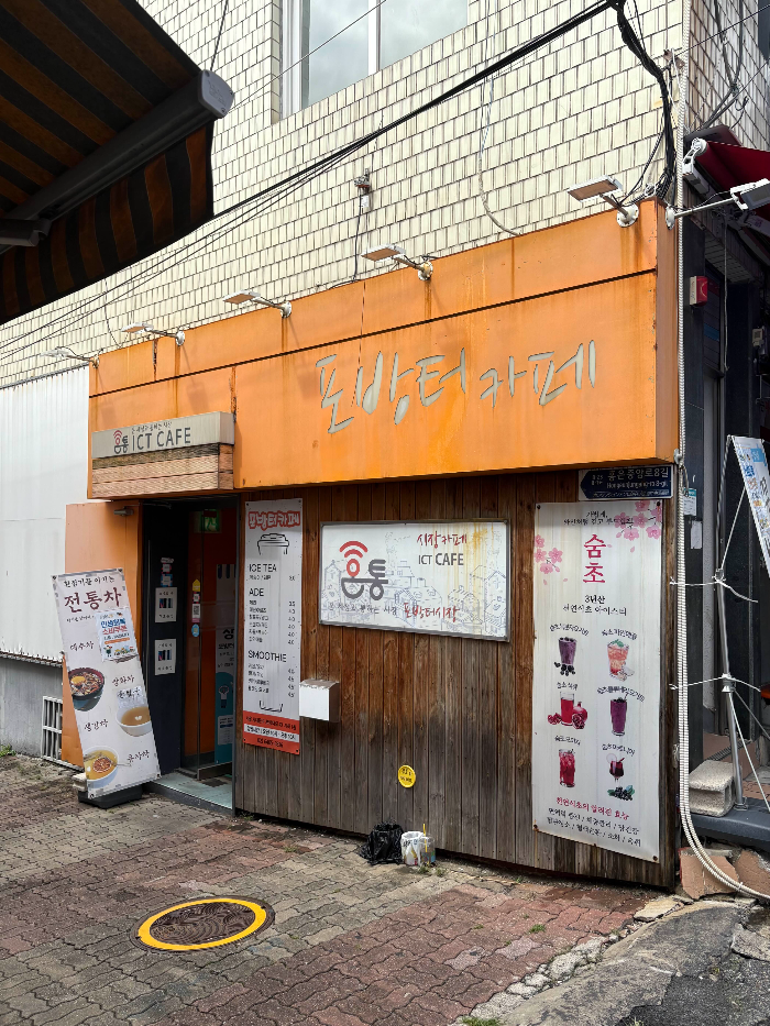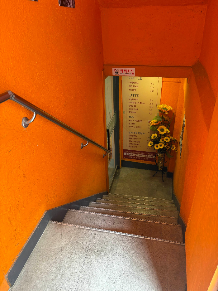 카페는 홍은동 포방터 시장 골목 안쪽에 자리하고 있으며, 입구에는 눈에 띄는 오렌지색 간판이 있어 쉽게 찾을 수 있었답니다.