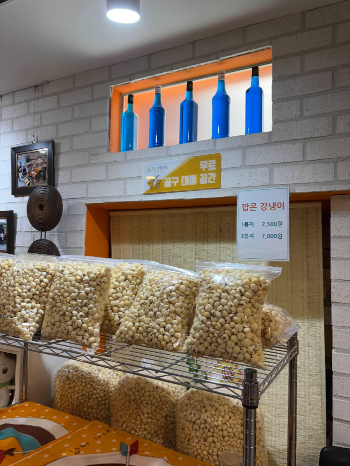 또한 카페에서는 원두, 과일식초, 강냉이 등 다양한 간식과 먹거리도 함께 판매하고 있어요.