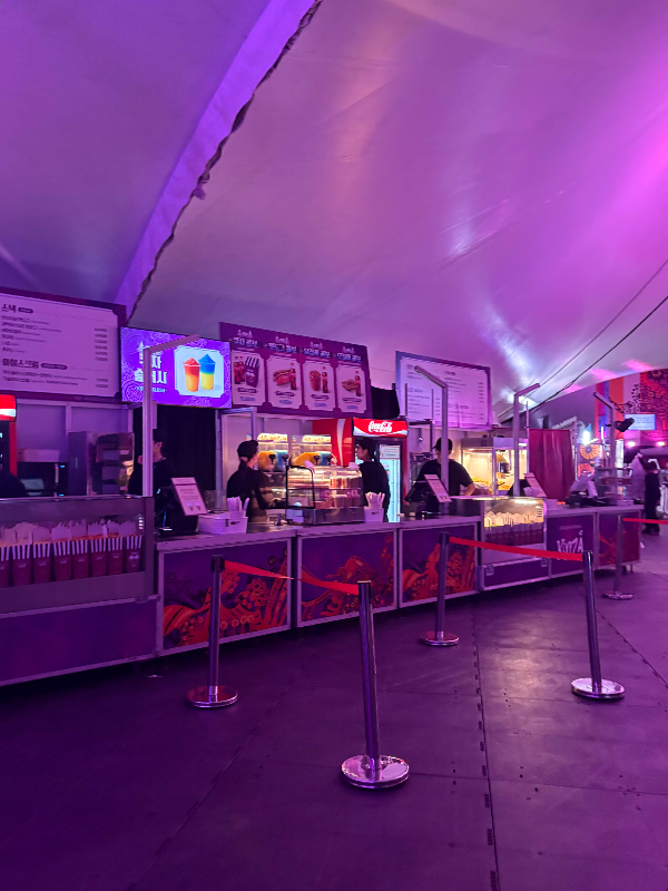 공연장 안에는 간식 판매 부스와 MD샵도 함께 운영되고 있었어요. 팝콘이나 음료 같은 간단한 먹거리부터, 쿠자 로고가 들어간 굿즈까지 다양하게 준비되어 있었어요.