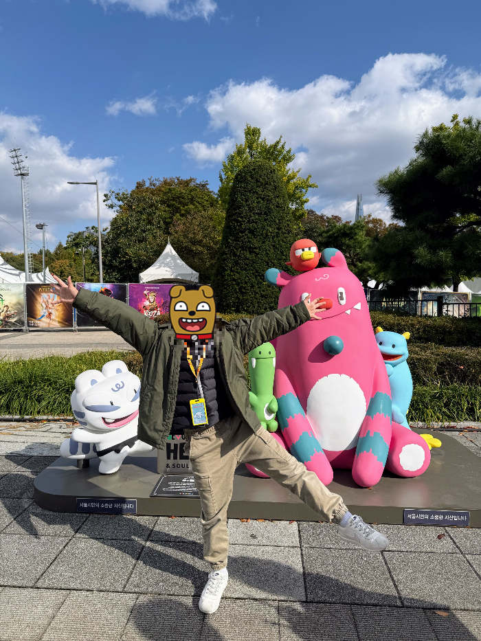쿠자 세계를 이끌어가는 트릭스터 앞에서도 기념사진 한 장 찍었어요. 공연장 곳곳에 포토존이 정말 잘 되어 있어서 사진 찍는 재미가 쏠쏠하더라고요 :)