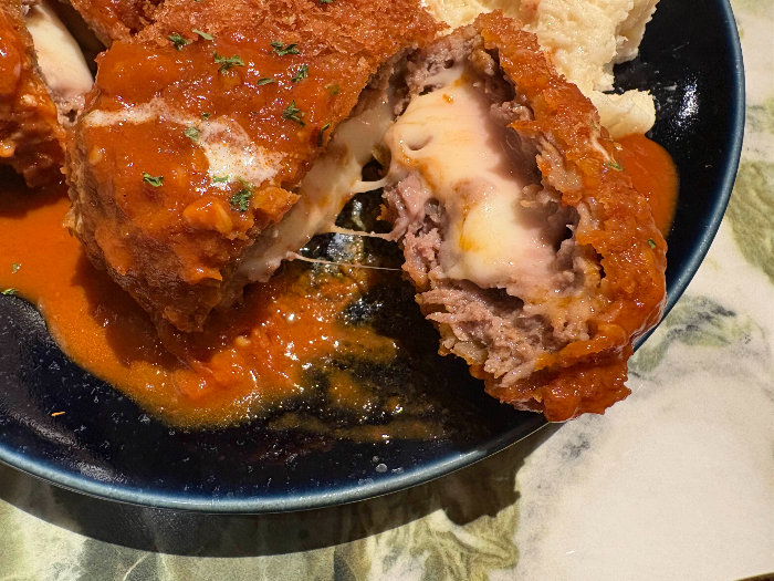 뿌려진 소스도 맛있고, 바삭한 멘치카츠 튀김 덕분에 식감도 훌륭했어요.