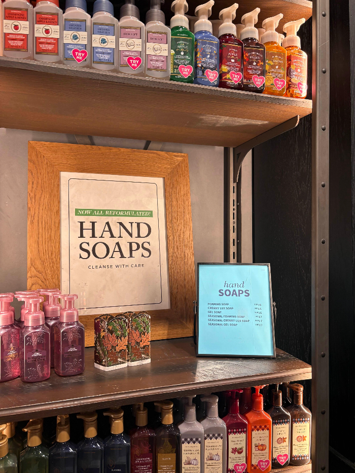 There was also a sink area where you could wash your hands and try the products. My son, who’s been to BBW with me a few times, headed straight there to wash his hands before I even said anything.