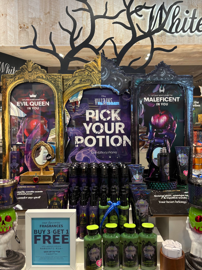 This year’s main theme seemed to be villains and witches, which made the displays even more fun to browse. They were running a buy 3, get 1 free promotion, so I ended up picking out four body lotions.
