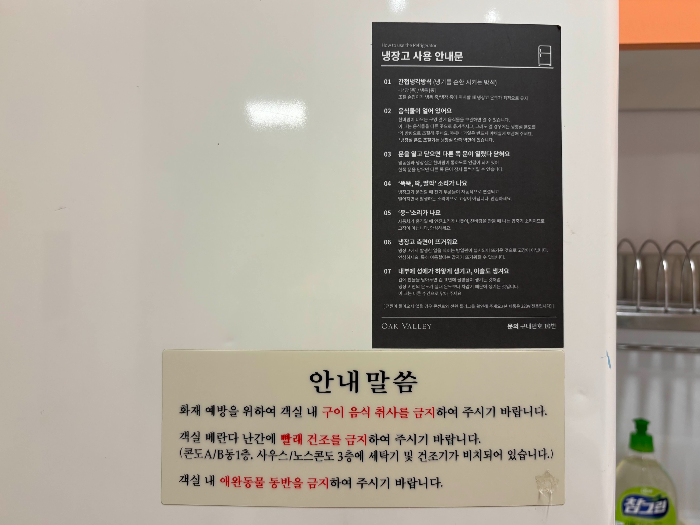 예전에는 취사가 가능했던 것 같은데, 현재는 취사가 불가능하더라고요. 대신 전자레인지와 전기포트가 준비되어 있어 컵라면이나 컵밥 정도는 간단하게 데워 먹기 좋았어요.