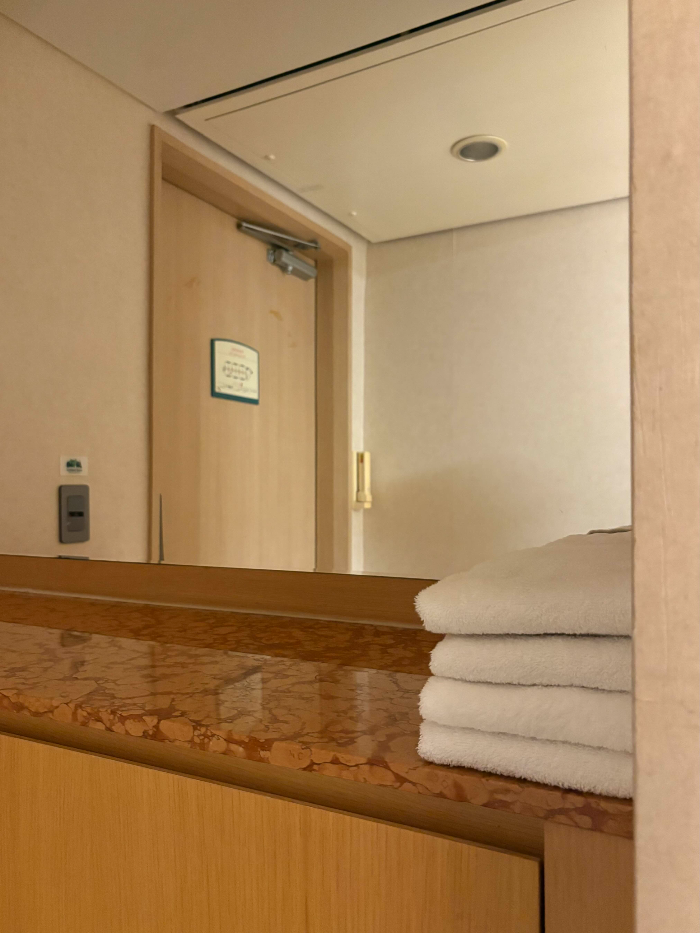 We stayed in a twin bed room, which felt comfortably spacious. The beds can be moved, so if you’re traveling with a child, you can push them together and turn them into a family-sized bed—very practical.