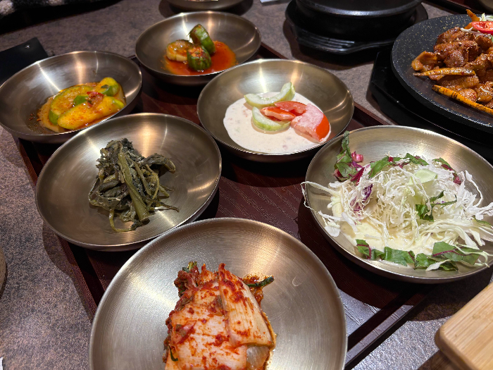 At the self-service bar, there were extra side dishes and leafy vegetables for wraps, as well as plum tea that was nice to have after the meal.