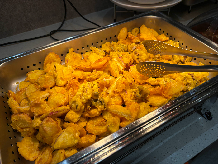 Vegetable fritters were freshly prepared, so they were warm and crispy when we tried them. Personally, the oyster mushroom fritters were my favorite.