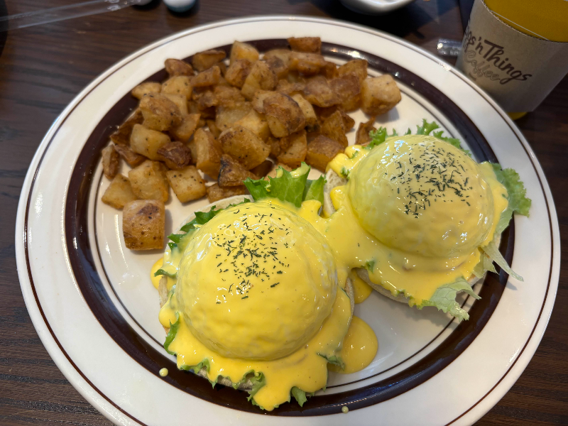 I had the salmon eggs Benedict. It looked almost too pretty to eat, with sauce gently covering the soft poached eggs and plenty of smoked salmon underneath. Once the yolk broke, everything came together beautifully.