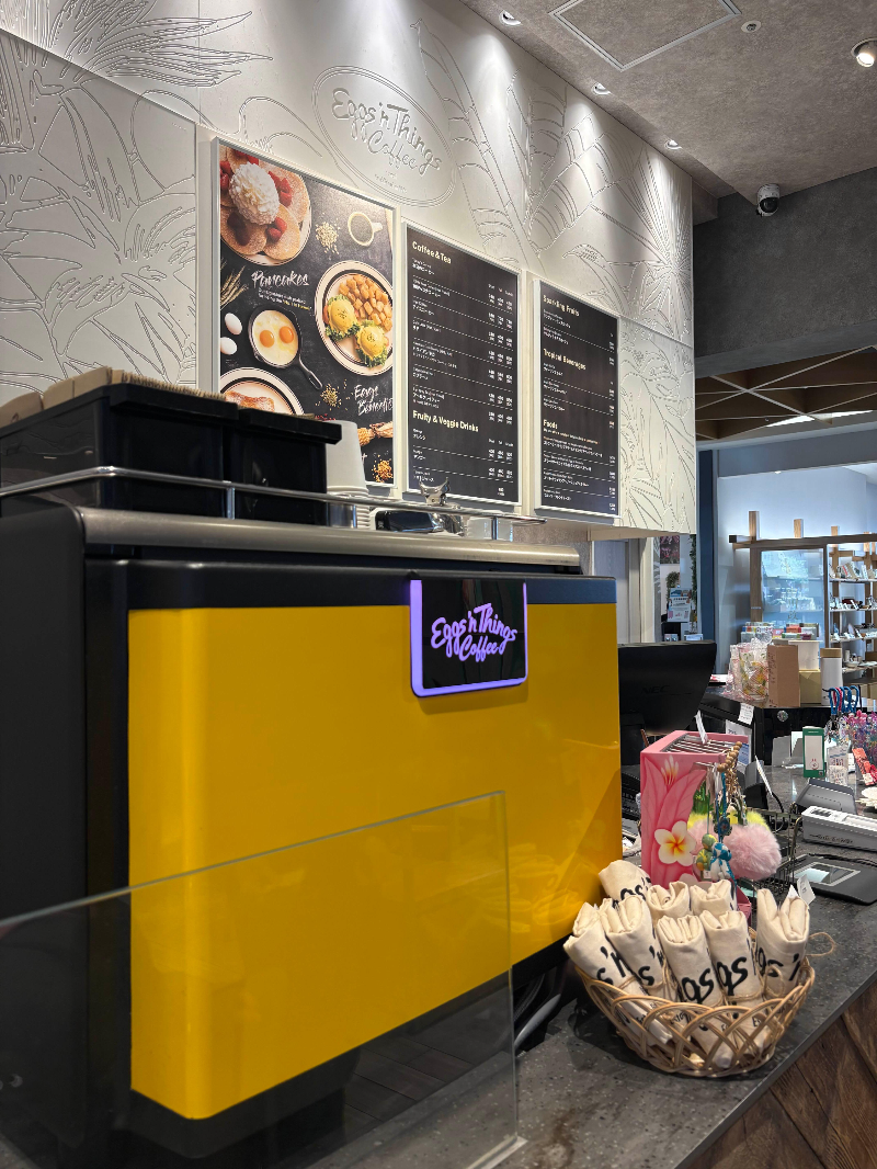 에그앤띵스는 하와이에도 있는 식당인데, 정작 하와이에서는 영업 시간이 맞지 않아 가보지 못했던 곳이에요. 쌀쌀한 가고시마 아침 공기 속에서 만난 하와이 감성 브런치라니, 묘하게 대비되는 분위기가 인상적이었어요.