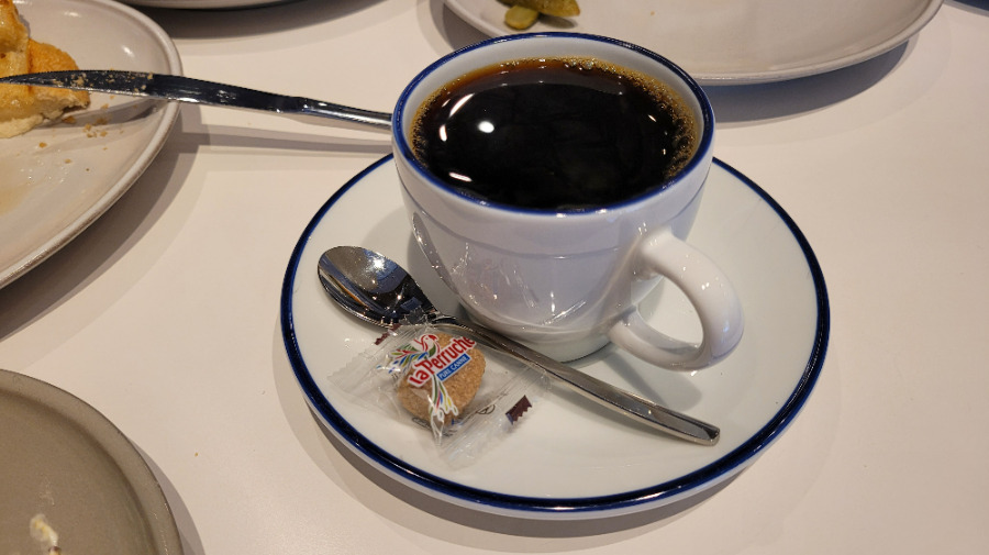 그리고 제일 마지막에 서빙된 드립 커피. 산미가 살짝 있지만 진하고 향긋하니 맛있었어요. 제가 원래 샌드위치 & 커피 조합을 굉장히 좋아하는데, 여기는 여행 중 가장 기억에 남는 장소 중 하나일 정도로 마음에 들었어요. 음식이 더부룩한 느낌 없이 소화가 잘 되더라고요.