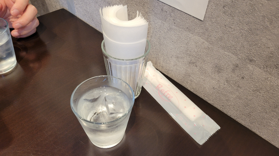 They provided water, tissues, and wet wipes. The embossing on the wet wipes was unique and different from the ones I use at home.