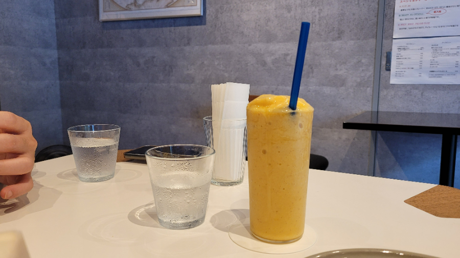 They generously filled my child's fruit smoothie to the brim. The staff informed us about the various fruits included, but I've forgotten about them... I should have taken a note. I only remember that it's a very healthy drink because it doesn't contain sugar.