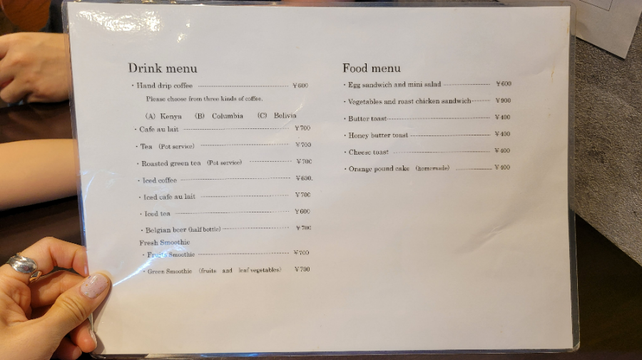 As we spoke in English, the staff kindly provided us with an English menu. It seemed like the cafe was possibly run by a couple.