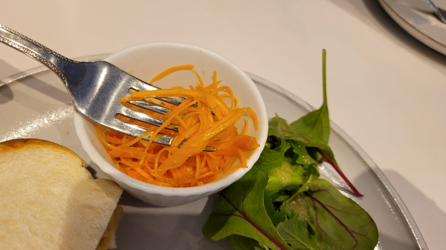 However, the salad was all mine. It had a carrot slaw-like vibe, and the carrots were fresh, well-prepared, and delicious.