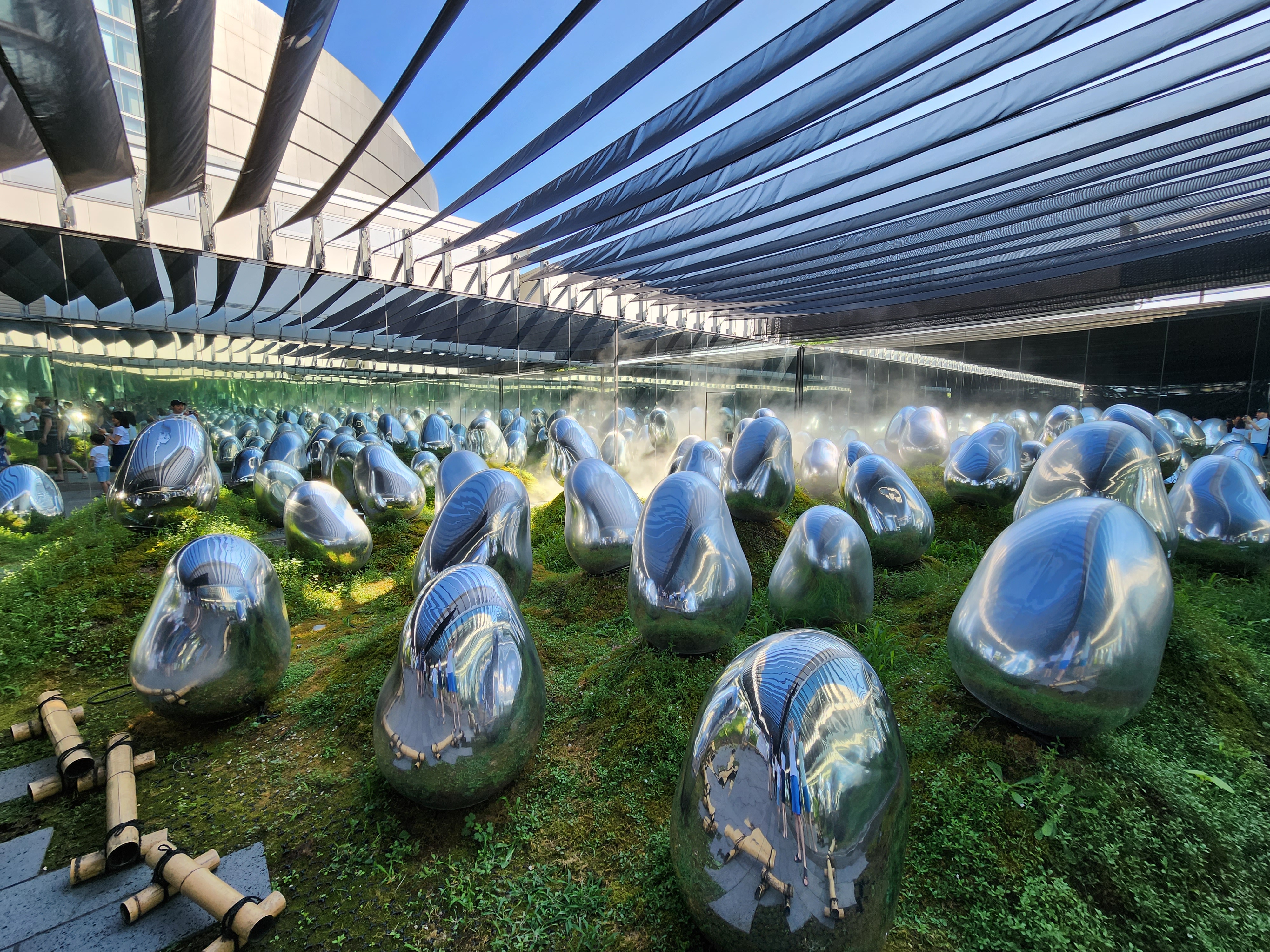 The 'Moss Garden', which was installed outdoors, was filled with adorable sculptures. I heard that after sunset, the area was illuminated, creating a completely different atmosphere. Since we visited during the day, we only saw the bright appearance of the sculptures.